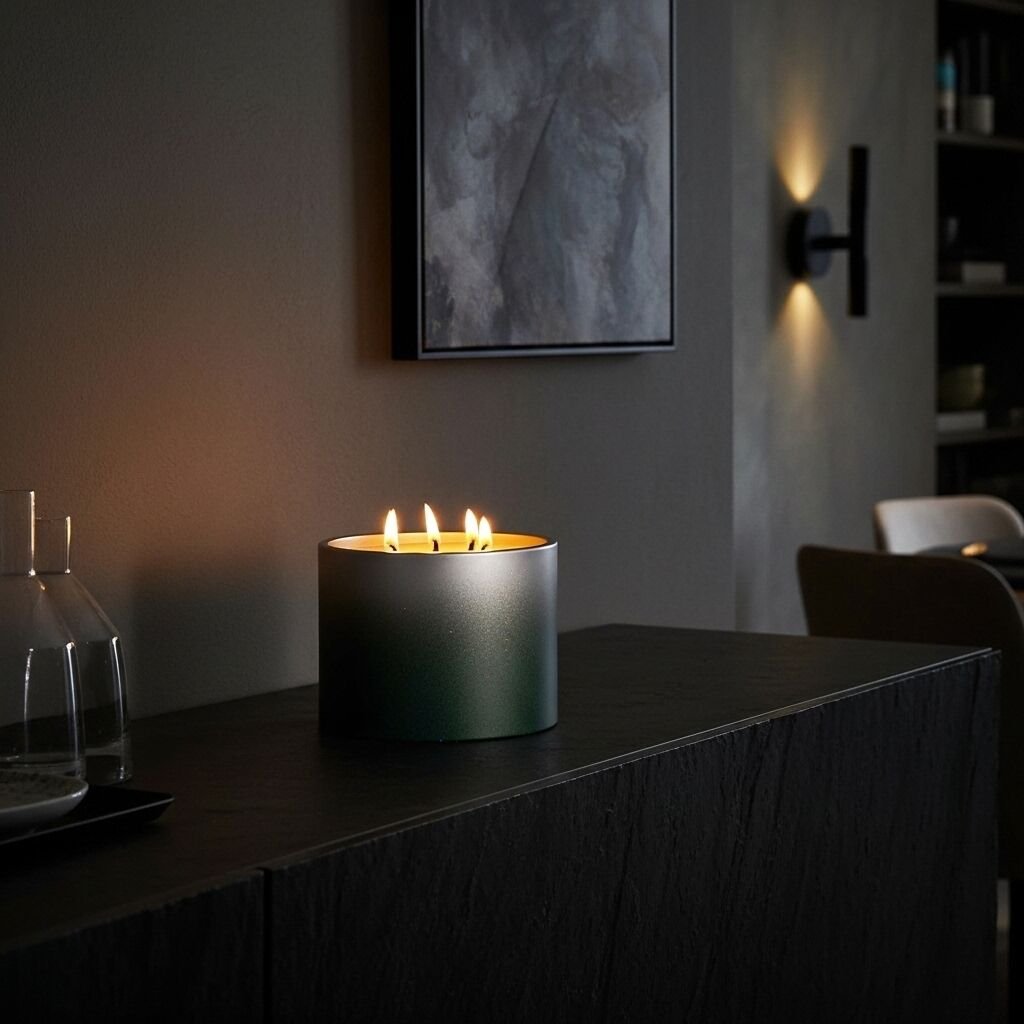 Beton kabın yalın tasarımı, ev dekorasyonunuza estetik bir dokunuş katar. Mum yakıldığında hem görsel hem de ruhsal bir sıcaklık sağlar.