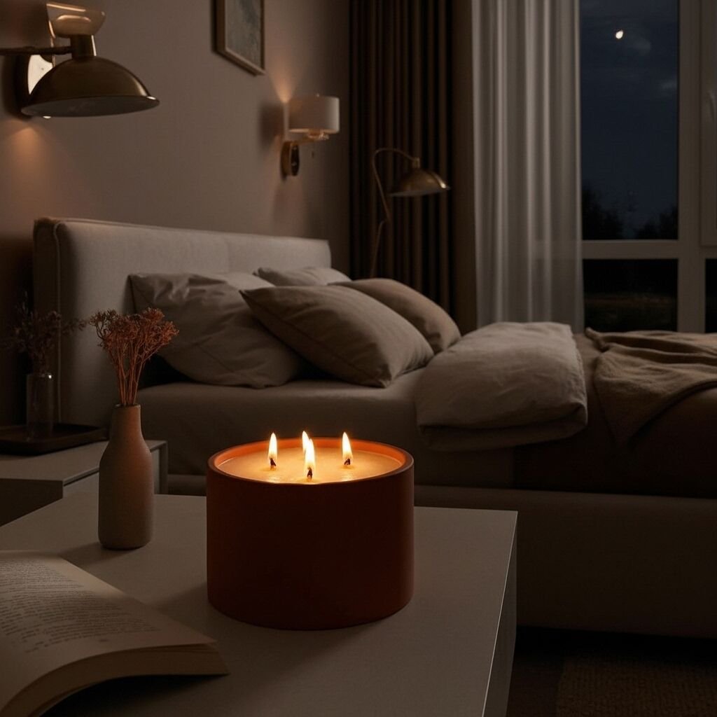 Beton kabın yalın tasarımı, ev dekorasyonunuza estetik bir dokunuş katar. Mum yakıldığında hem görsel hem de ruhsal bir sıcaklık sağlar.