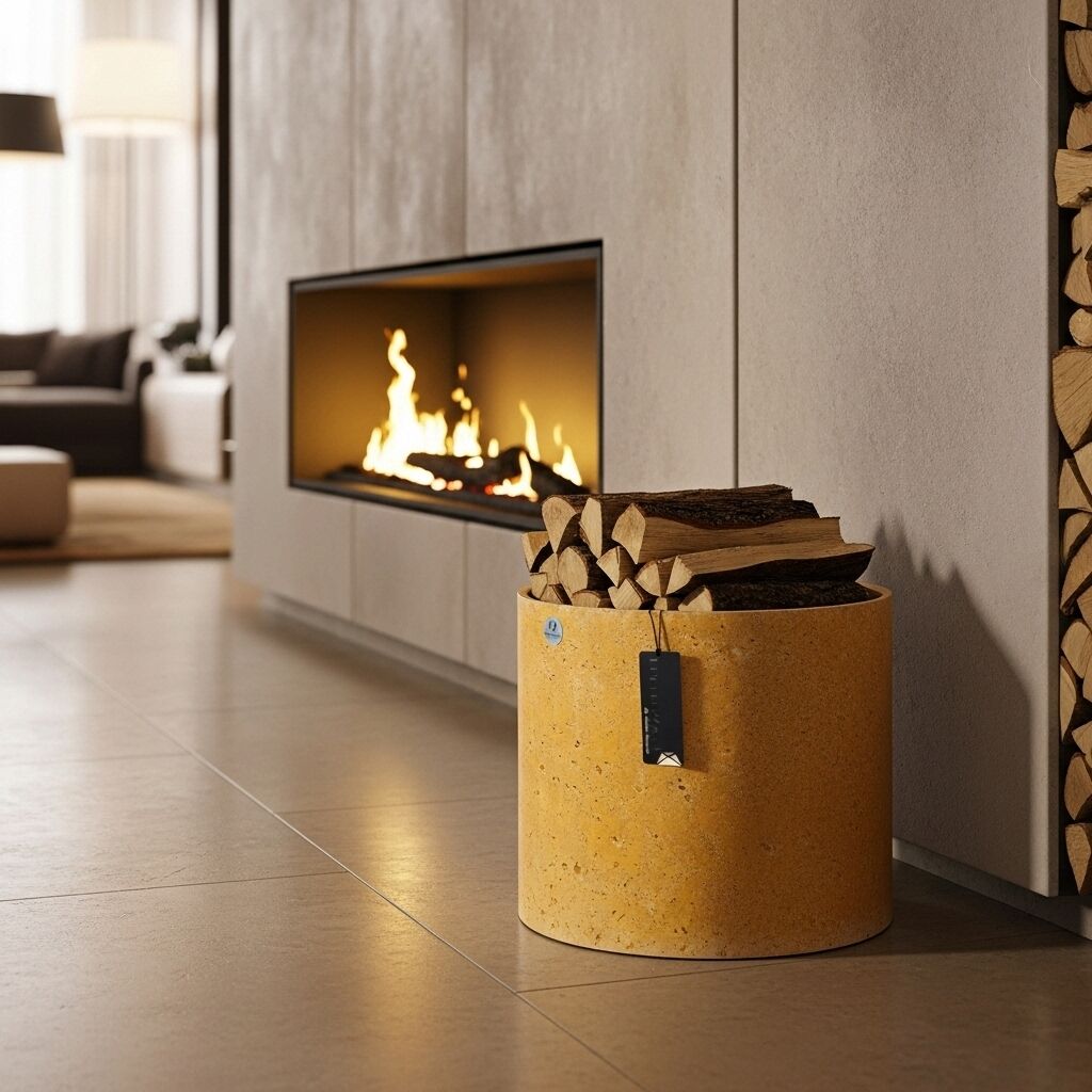 Tamamen betondan üretilen odunluk kova, güçlü formu ve minimalist çizgileriyle yaşam alanlarınıza modern bir dokunuş katar. Hem işlevsel hem de dekoratif bir eşlikçi olarak tasarlandı.