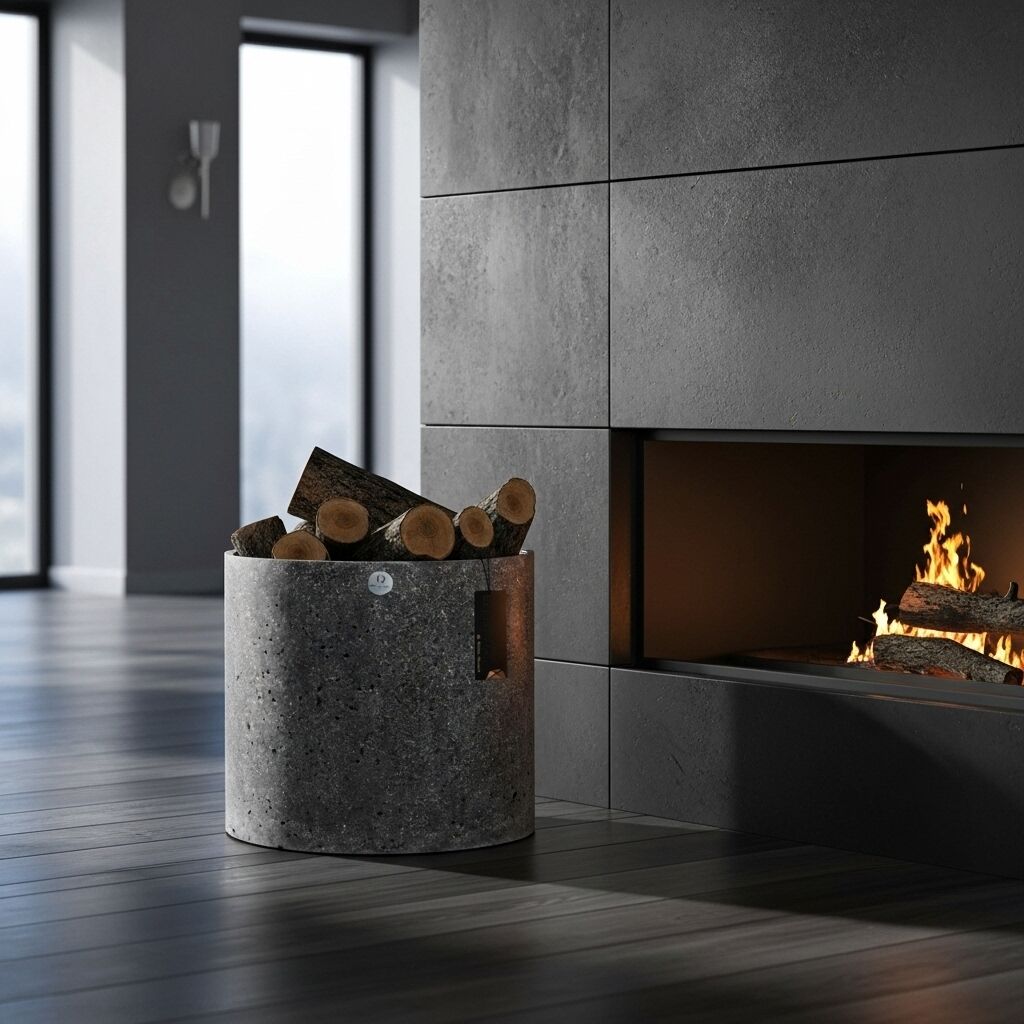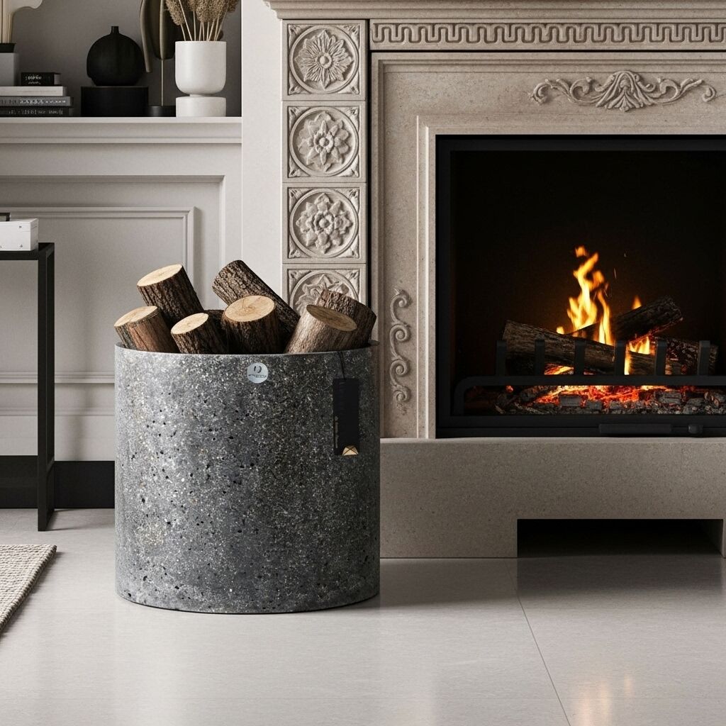 Tamamen betondan üretilen odunluk kova, güçlü formu ve minimalist çizgileriyle yaşam alanlarınıza modern bir dokunuş katar. Hem işlevsel hem de dekoratif bir eşlikçi olarak tasarlandı.