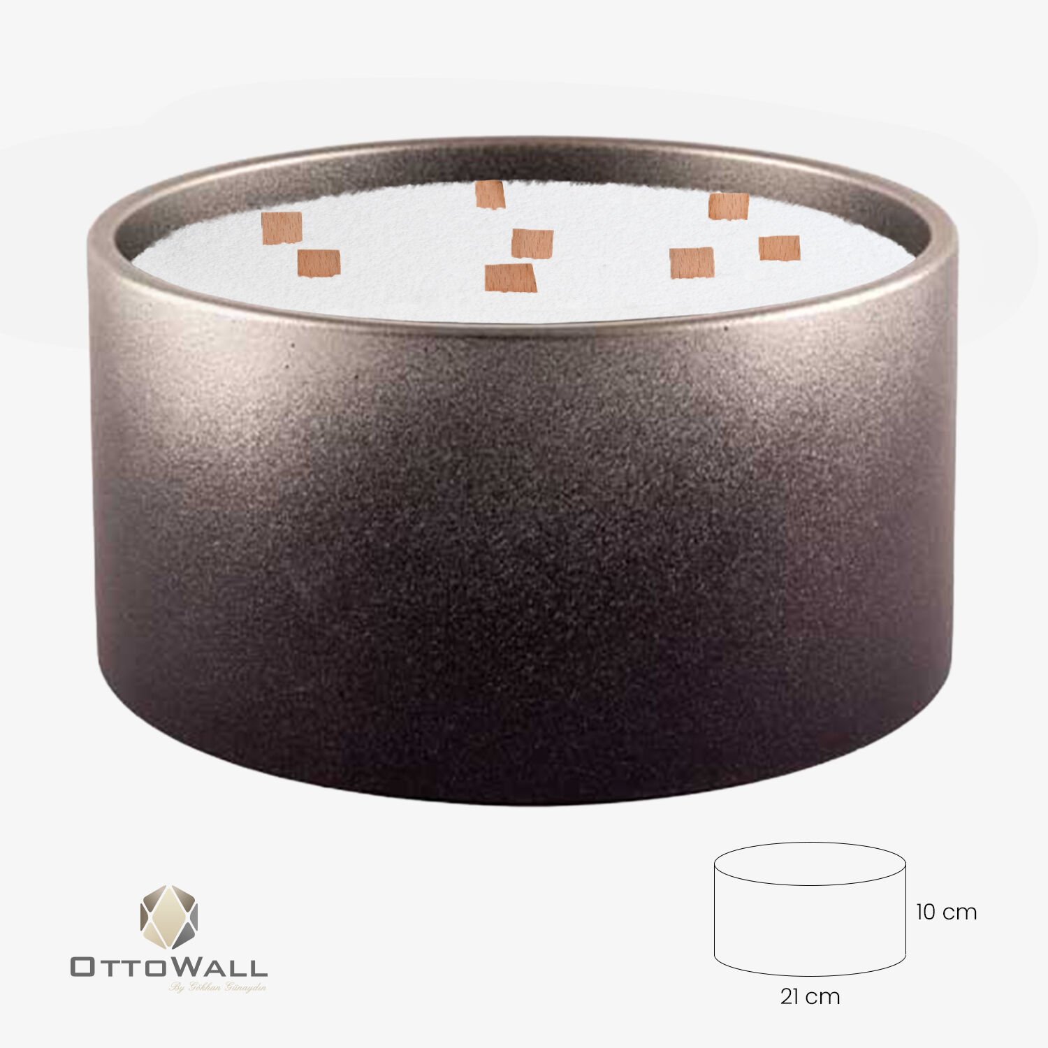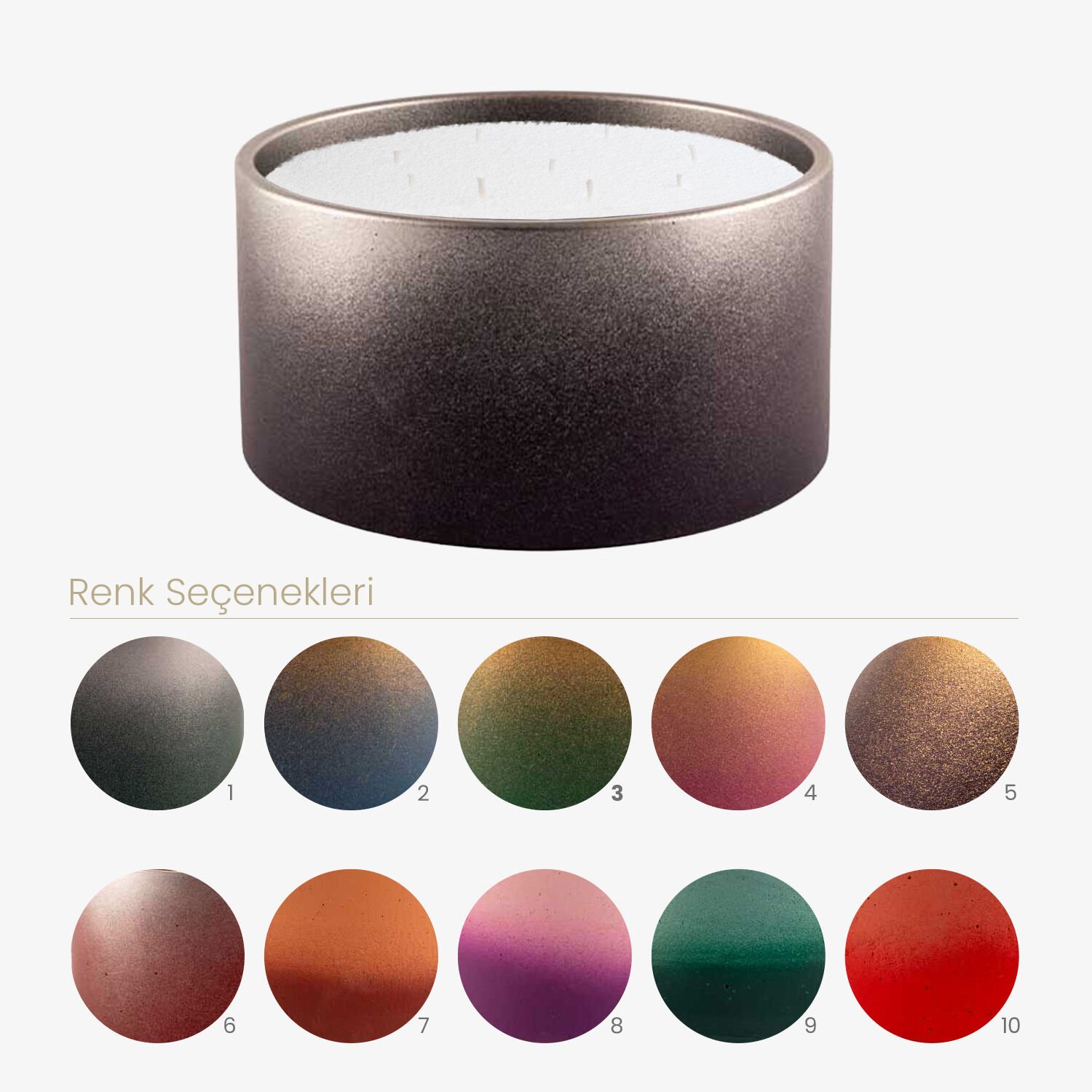 Şık beton kab içinde sunulan bu toz mum seti, hem dekoratif hem de pratik bir kullanım sağlar. Minimalist tasarımıyla evinize estetik bir dokunuş katar.
