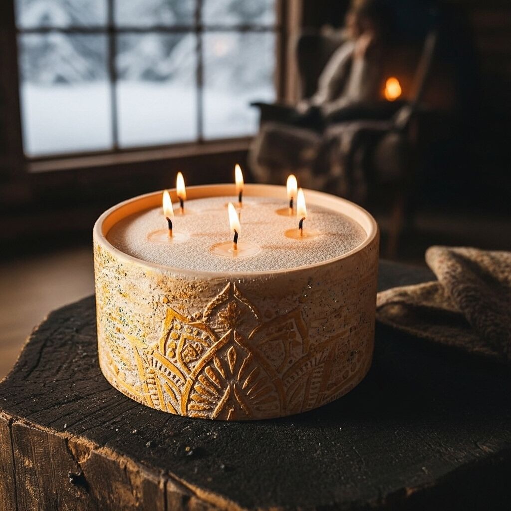 Her beton kap ve toz mum seti el işçiliğiyle özenle üretilir; her ürün kendine has doğal dokular ve özgün karakter taşır.
